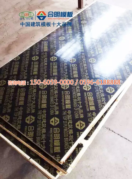 2、合明覆膜建築模闆幅面寬,拼縫少,闆面尺寸爲1220×2440mm,1830*915mm 厚度12-18mm可定制,同鋼模闆相比支模、拆模速度快。
